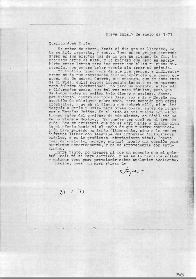 Carta de Francisco Ayala a José M.ª Ferrater Mora (07/01/1971)