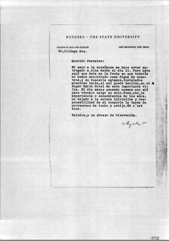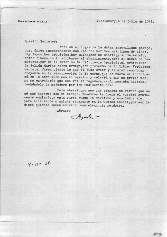 Carta de Francisco Ayala a José M.ª Ferrater Mora (09/05/1958)