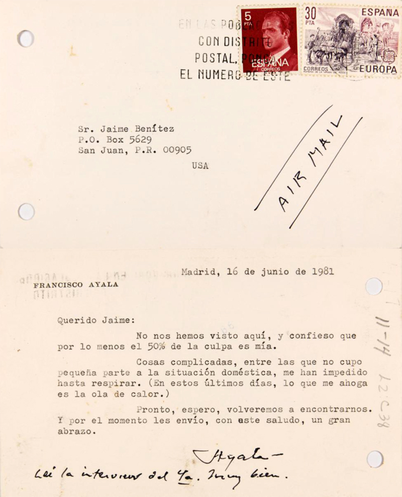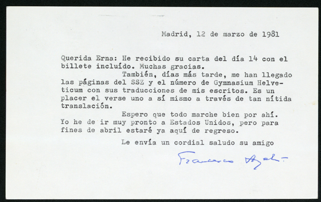 Carta de Francisco Ayala a Erna Brandenberger (12/03/1981)