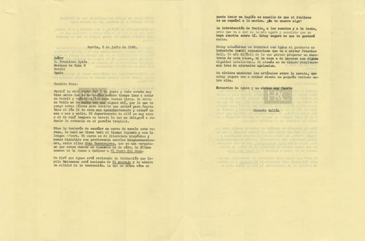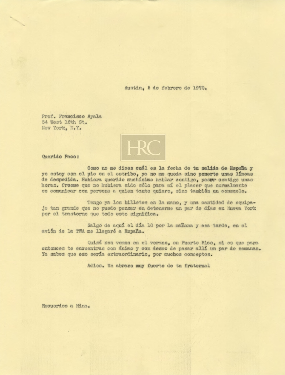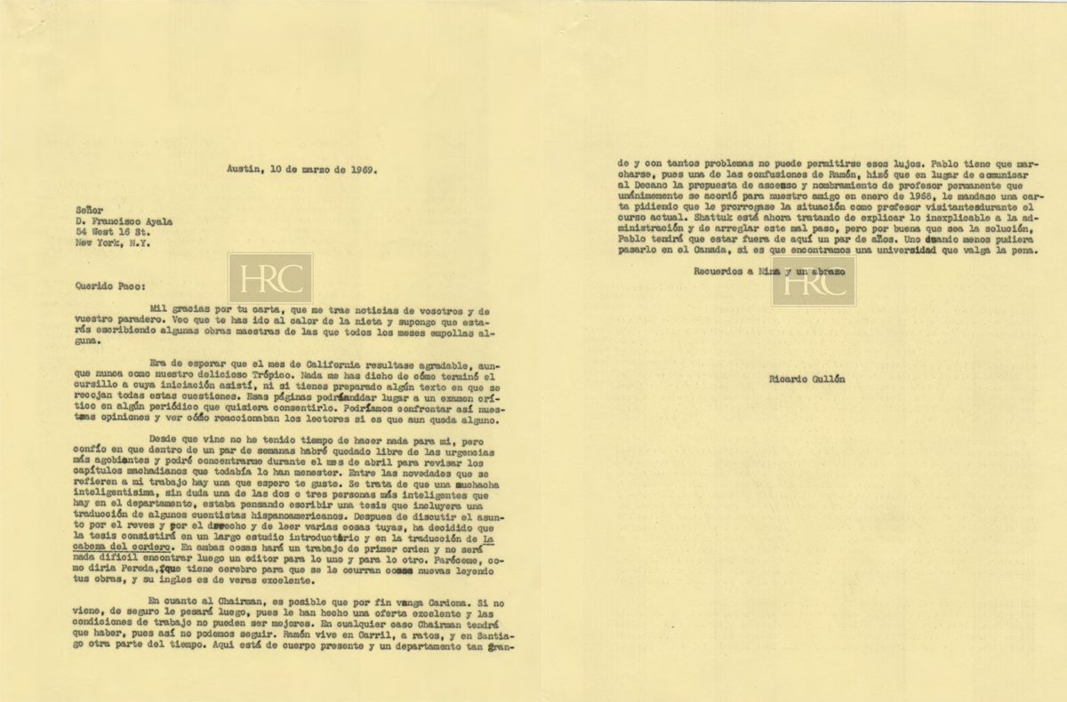 Carta de Ricardo Gullón a Francisco Ayala (10/03/1969)