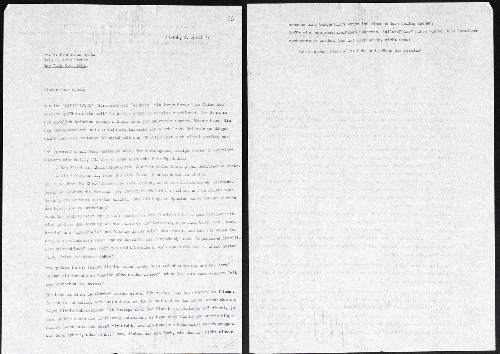 Carta de Erna Brandenberger a Francisco Ayala (04/04/1977)