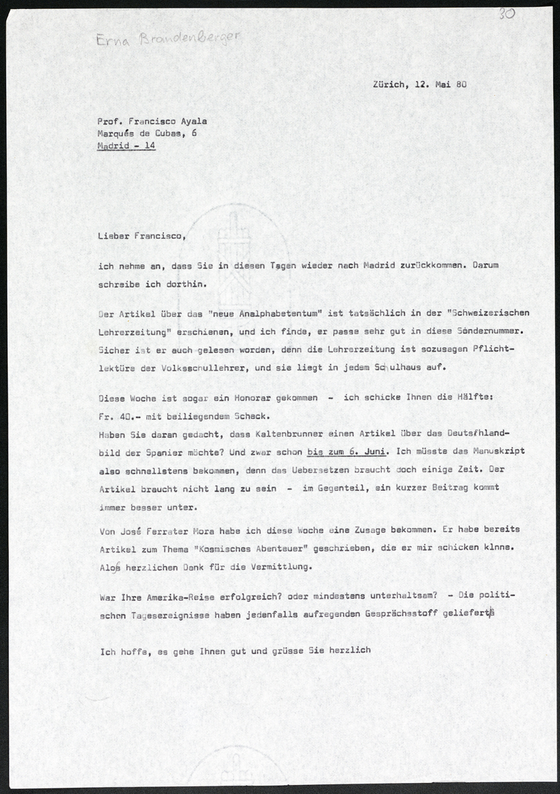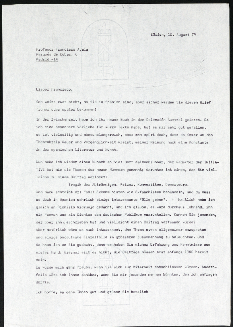 Carta de Erna Brandenberger a Francisco Ayala (16/09/1978)
