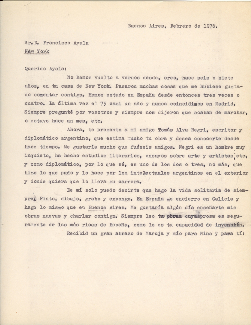 Carta de Francisco Ayala a Guillermo de Torre (22/04/1963)