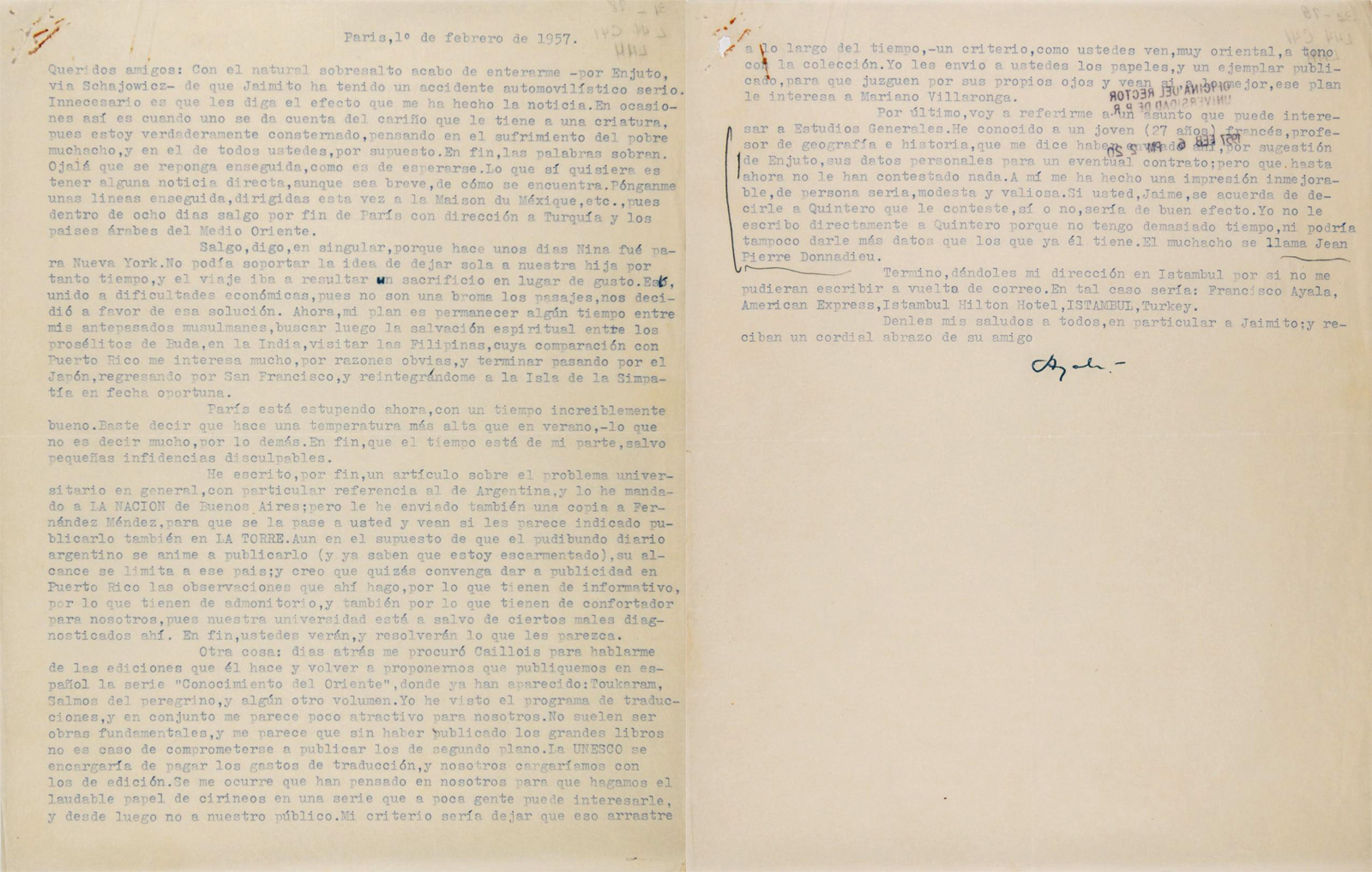 Carta de Francisco Ayala a Jaime Benítez (01/02/1957)