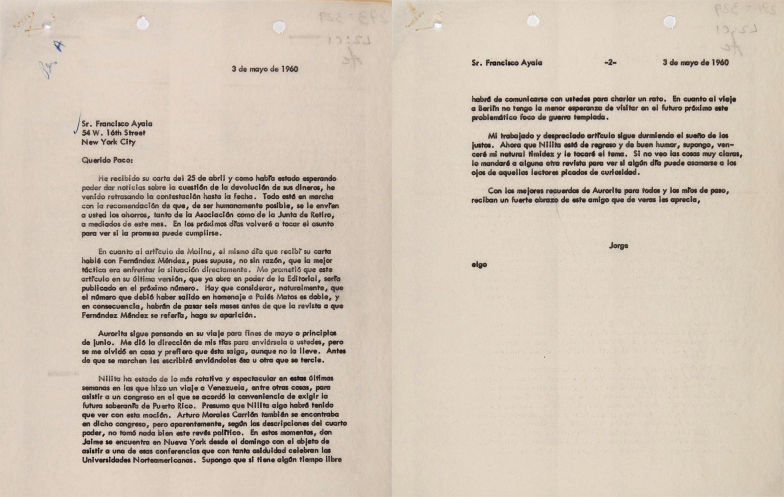 Carta de Francisco Ayala a Jorge Enjuto (25/04/1960)