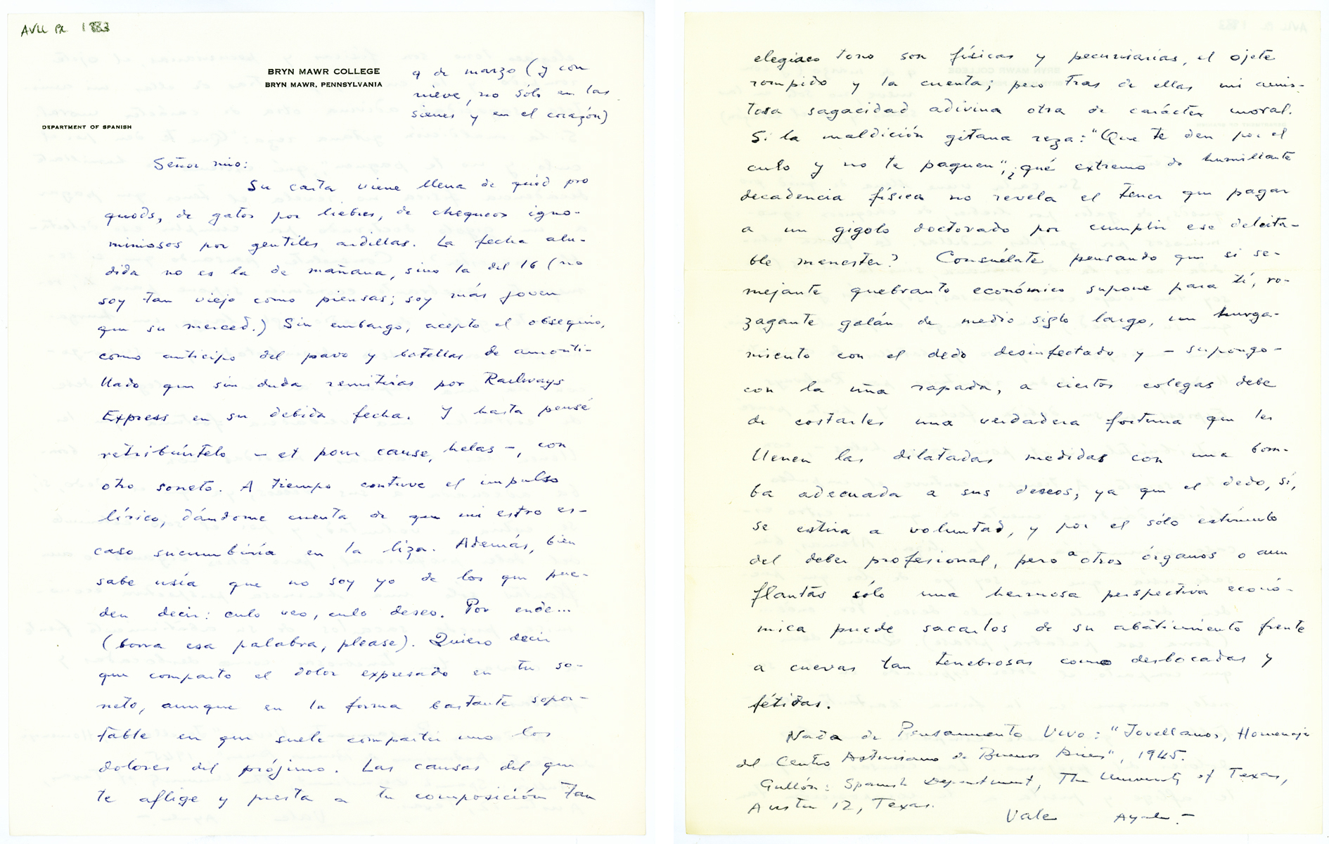 Carta de Francisco Ayala a Damián Bayón (11/02/1961)