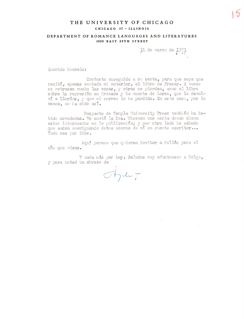 Recibo tu carta acusando recibo del artículito valleinclanesco. Yo en cambio no he recibido (y temo que no recibiré nunca) los números de Insula, pues si, como dice Canito, estoy en la lista desde este año, estamos terminando mayo [sic] y sus hojas no han florecido en mi balcón. No te molestes más, pues se ve que eso no tiene remedio.