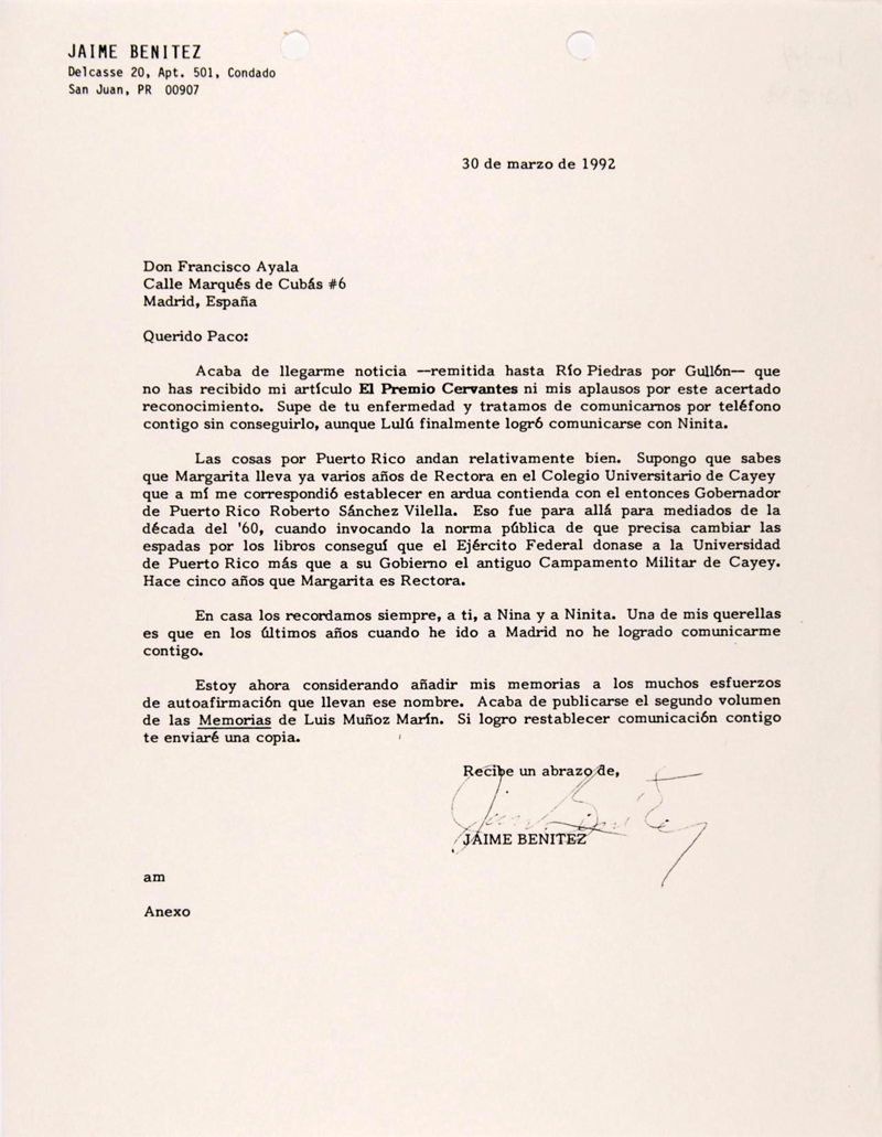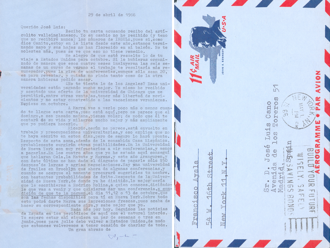 Carta de Francisco Ayala a José Luis Cano (29/04/1966)