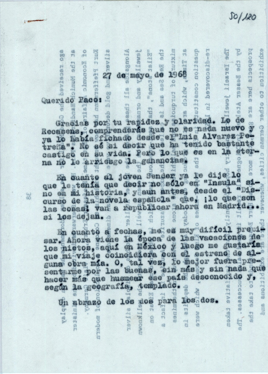 Carta de Max Aub a Francisco Ayala (27/05/1968)