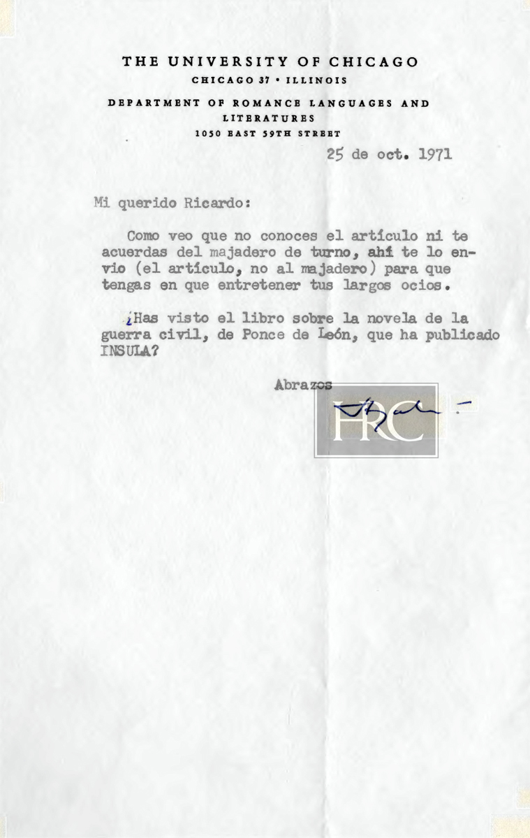 Mi querido Andújar: Por fin, aquí en Chicago, he podido leer