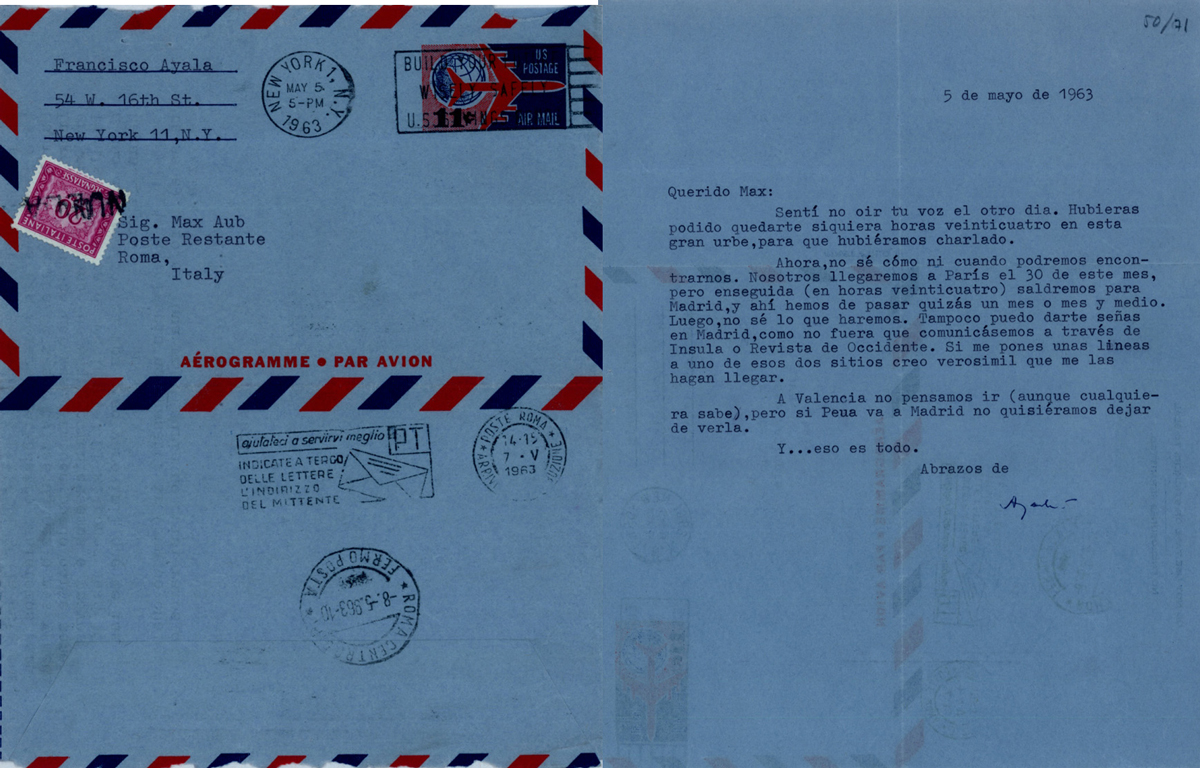 Carta de Francisco Ayala a Max Aub (05/05/1963)