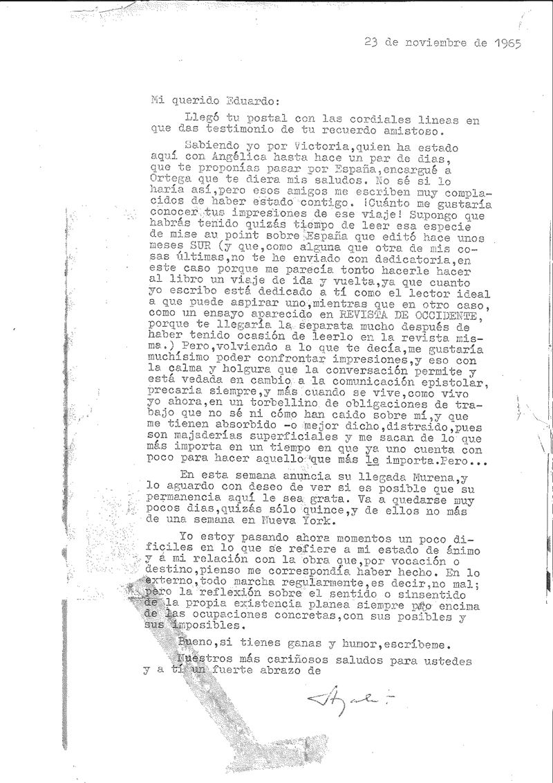 Carta de Francisco Ayala a Eduardo Mallea (23/11/1965)