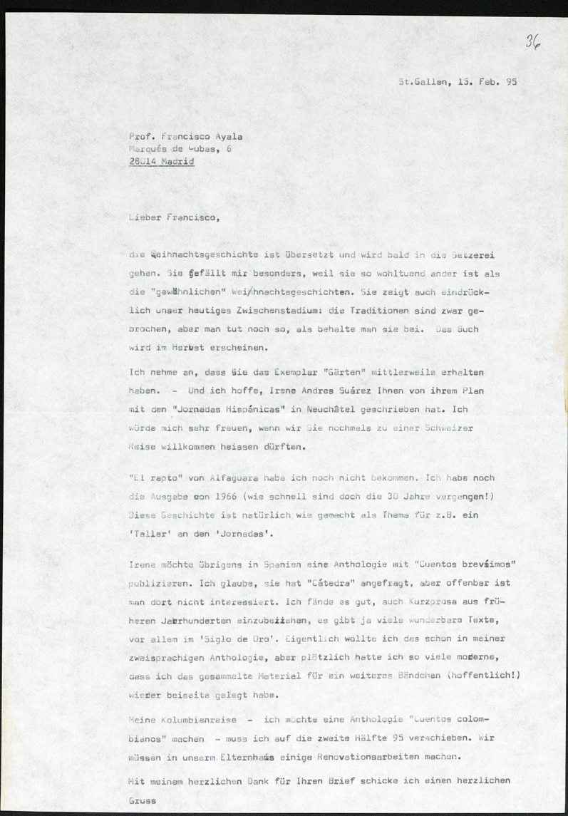 Carta de Erna Brandenberger a Francisco Ayala (15/02/1995)