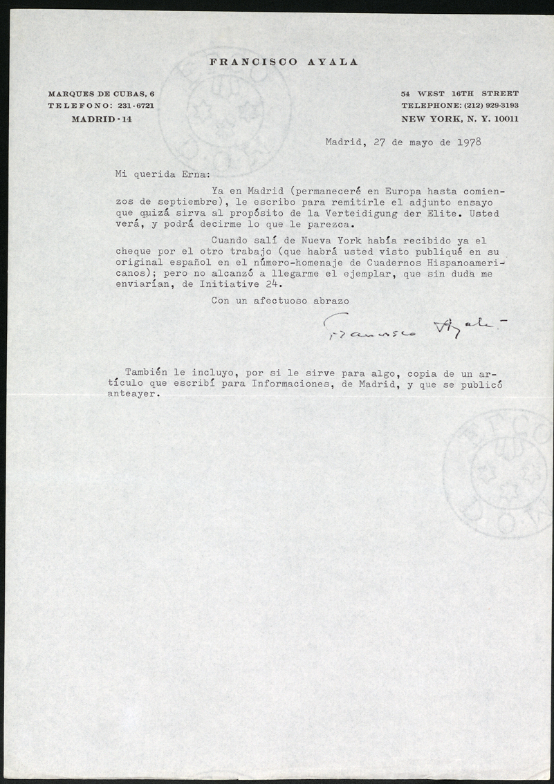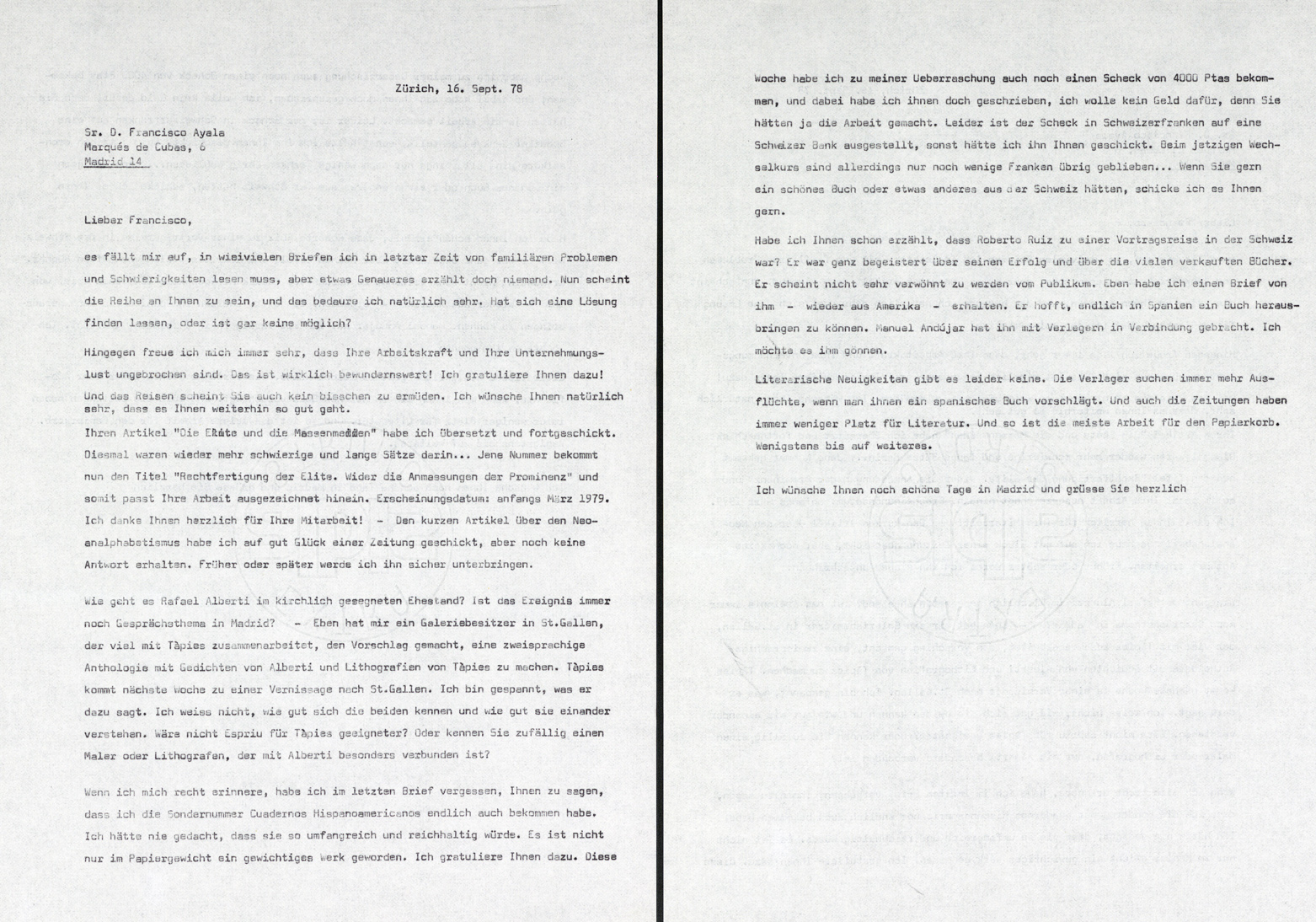 Carta de Erna Brandenberger a Francisco Ayala (16/09/1978)